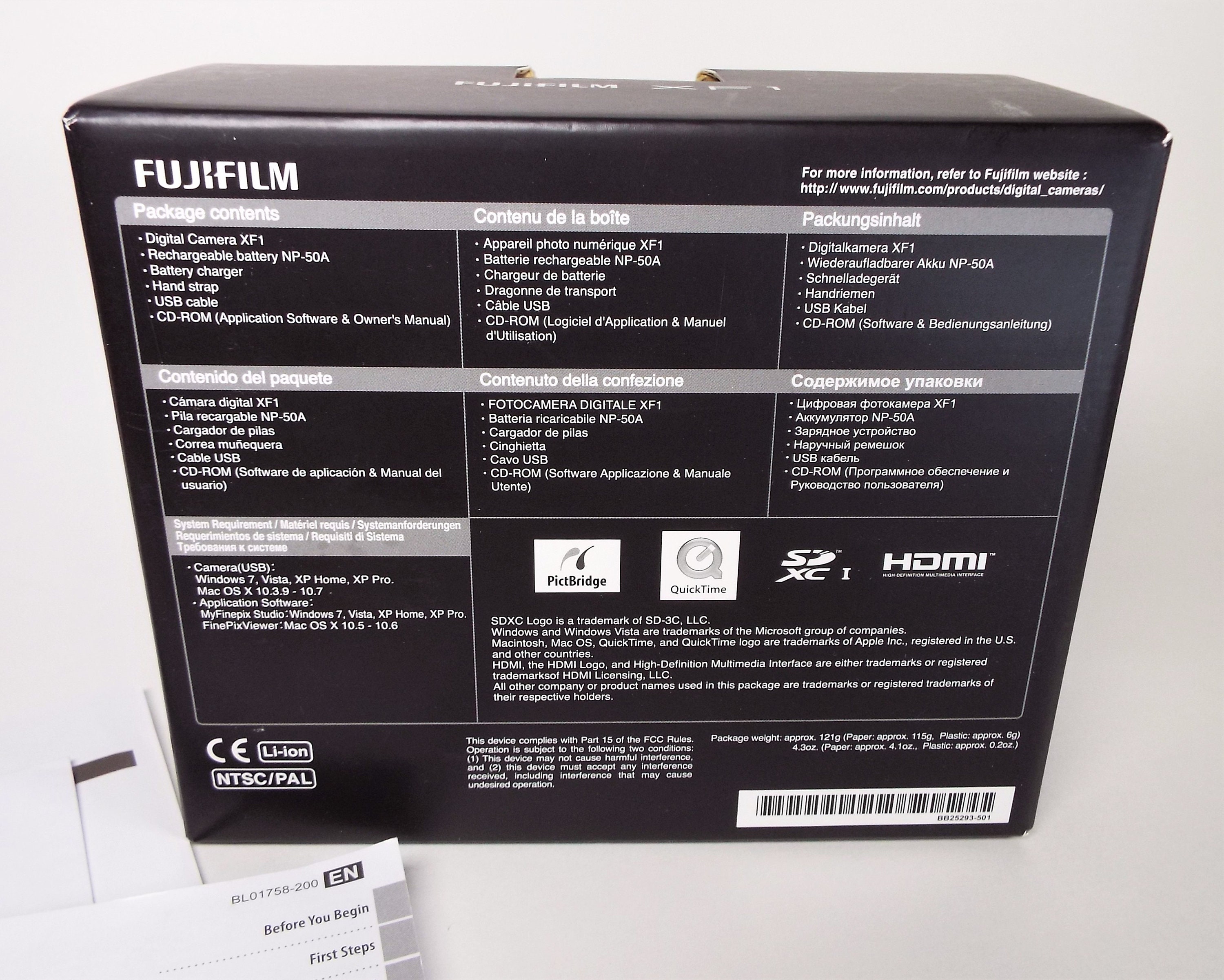 Fujifilm FinePix XF1 Digital Camera Empty Box - Includes Owner’s Manual, Strap, (2) Rechargeable Batteries, Charger, Cords, CD