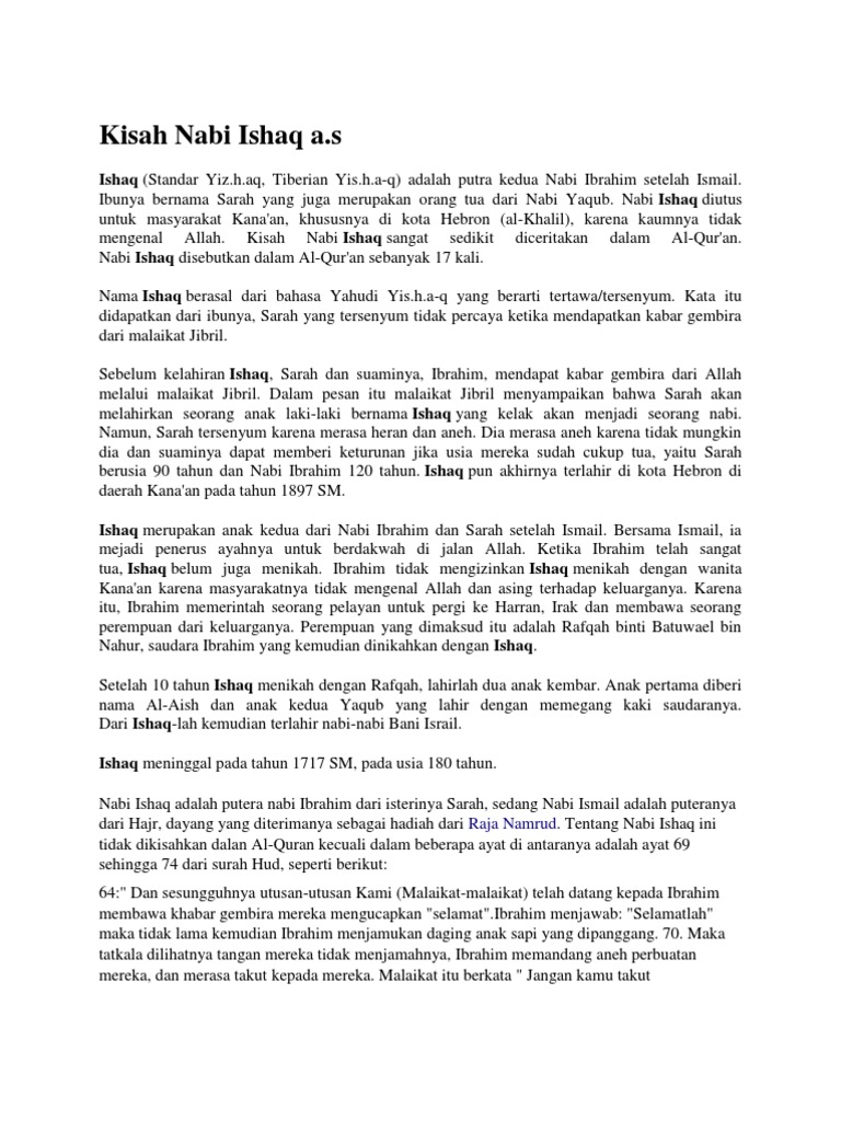 Kisah Nabi Ishaq Lengkap Dari Lahir Sampai Wafat - Muslimidia