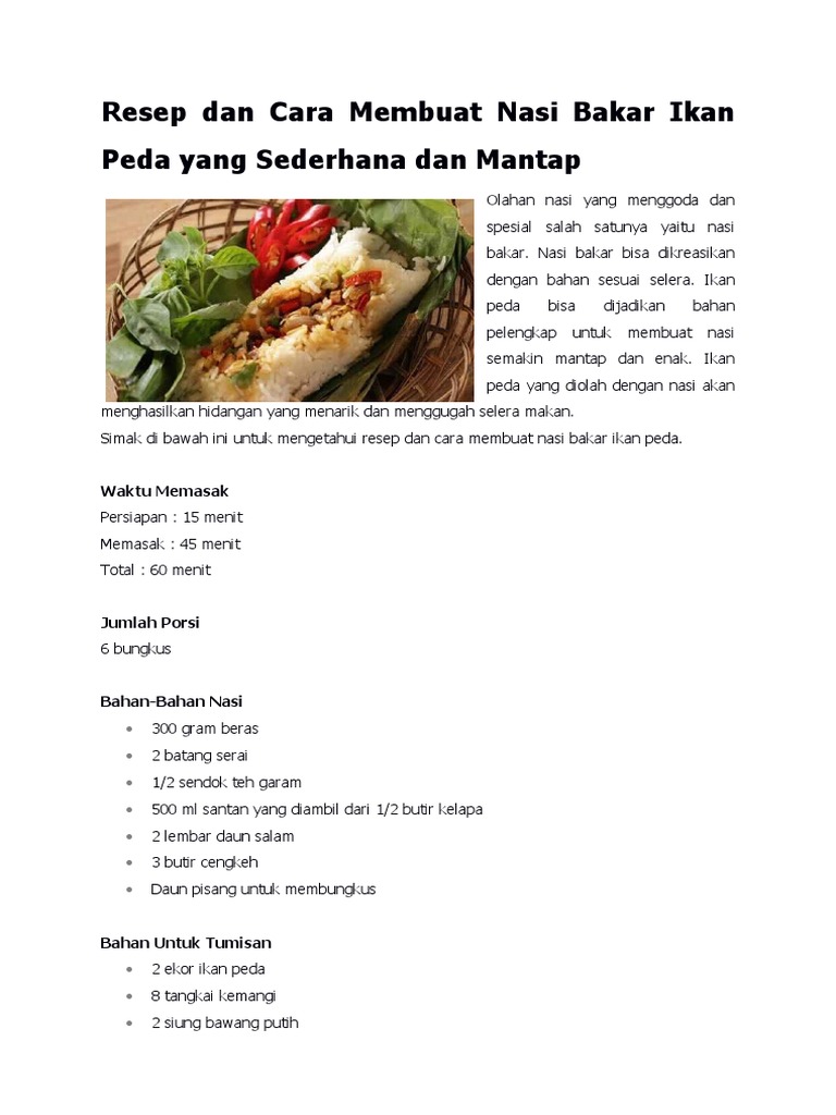 Resep Dan Cara Membuat Nasi Bakar Ikan Peda Yang Sederhana Dan Mantap
