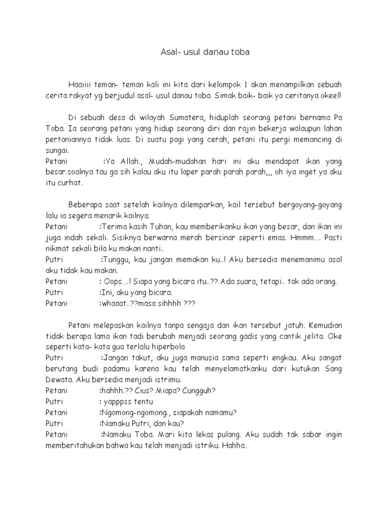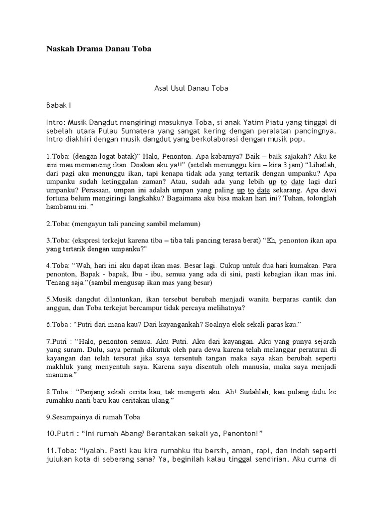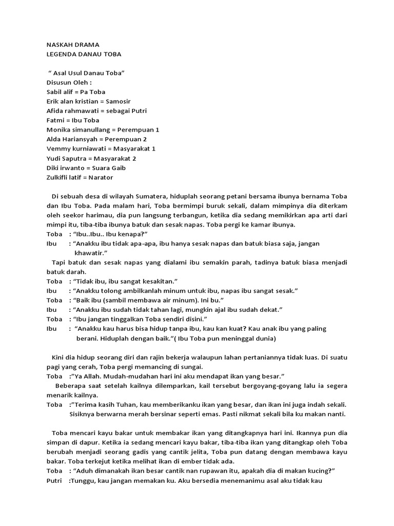 DOC) Naskah drama Asal Nama Danau Toba | wayan puja - Academia.edu