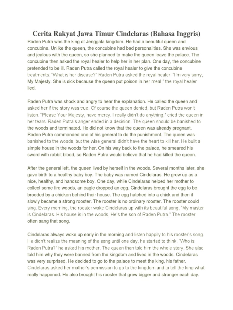 dramafuzziblog: Naskah Drama Cindelaras Dalam Bahasa Inggris