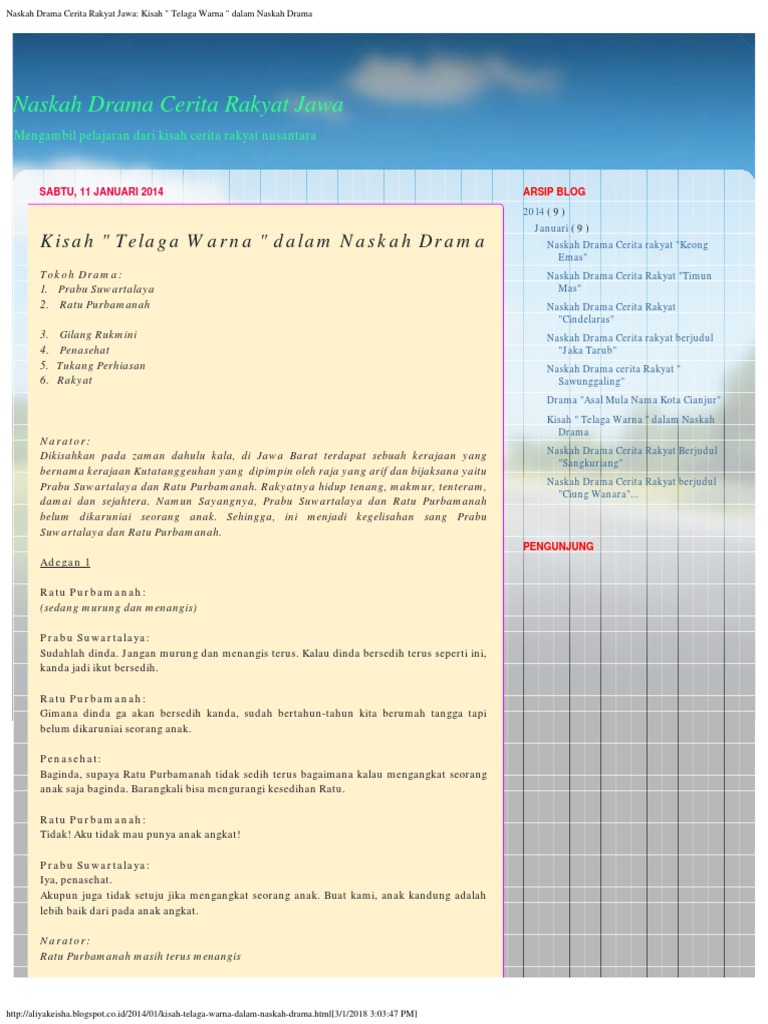 Naskah Drama Cerita Rakyat Jawa Kisah Telaga Warna Dalam Naskah Drama