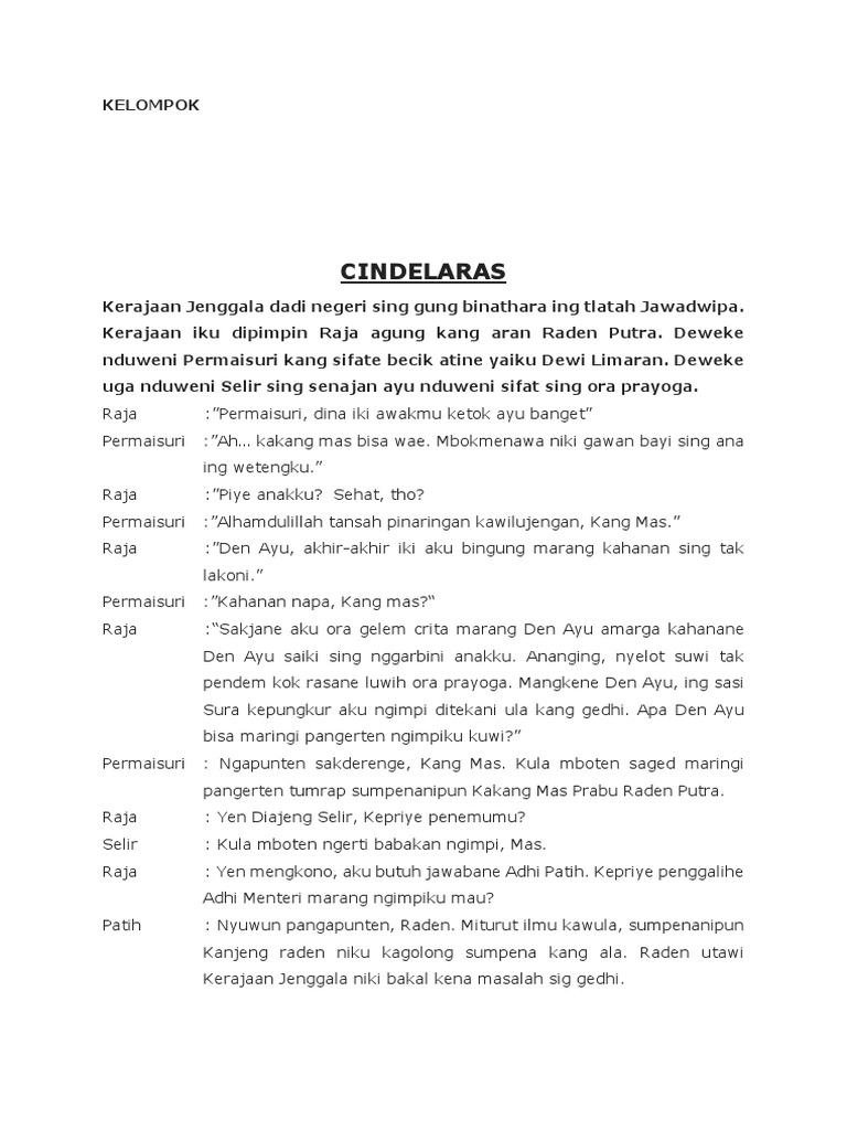 Naskah Drama Cerita Rakyat Cindelaras Bahasa Jawa - Rommy Car