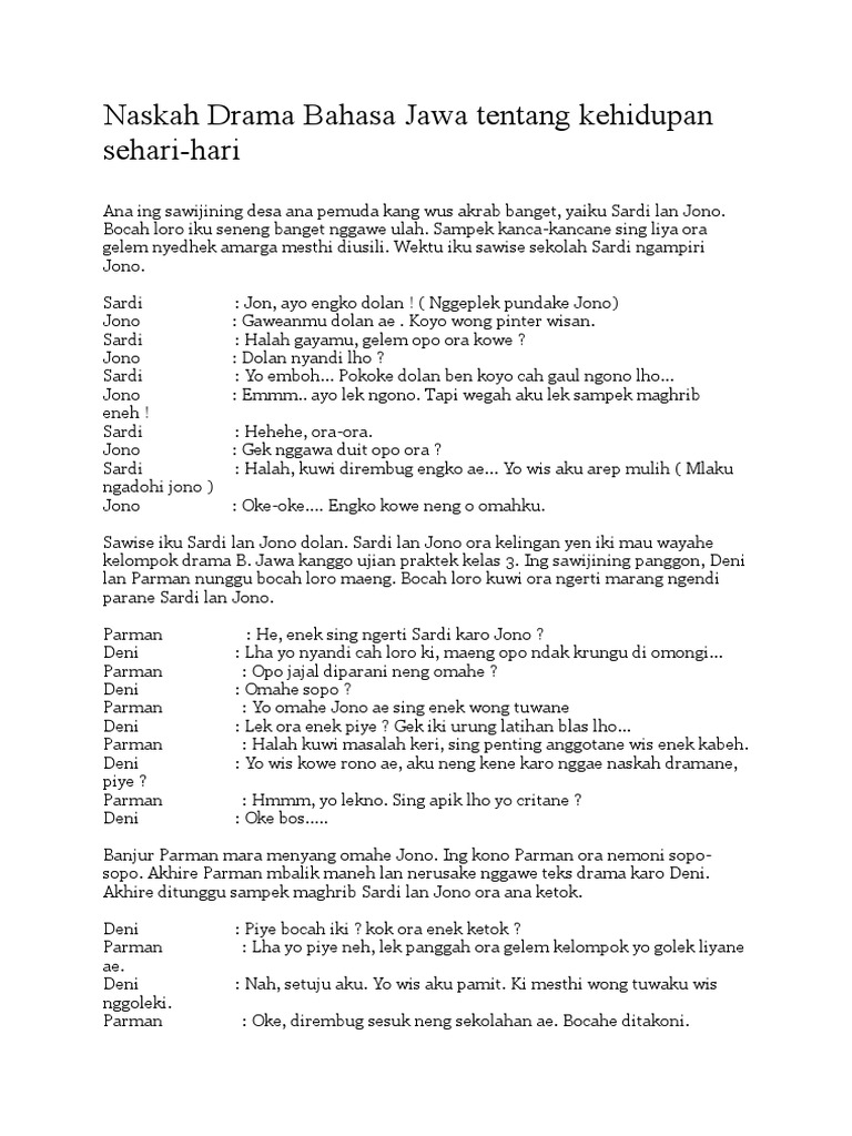 Contoh Teks Drama Bahasa Jawa 5 Orang - Bagikan Contoh