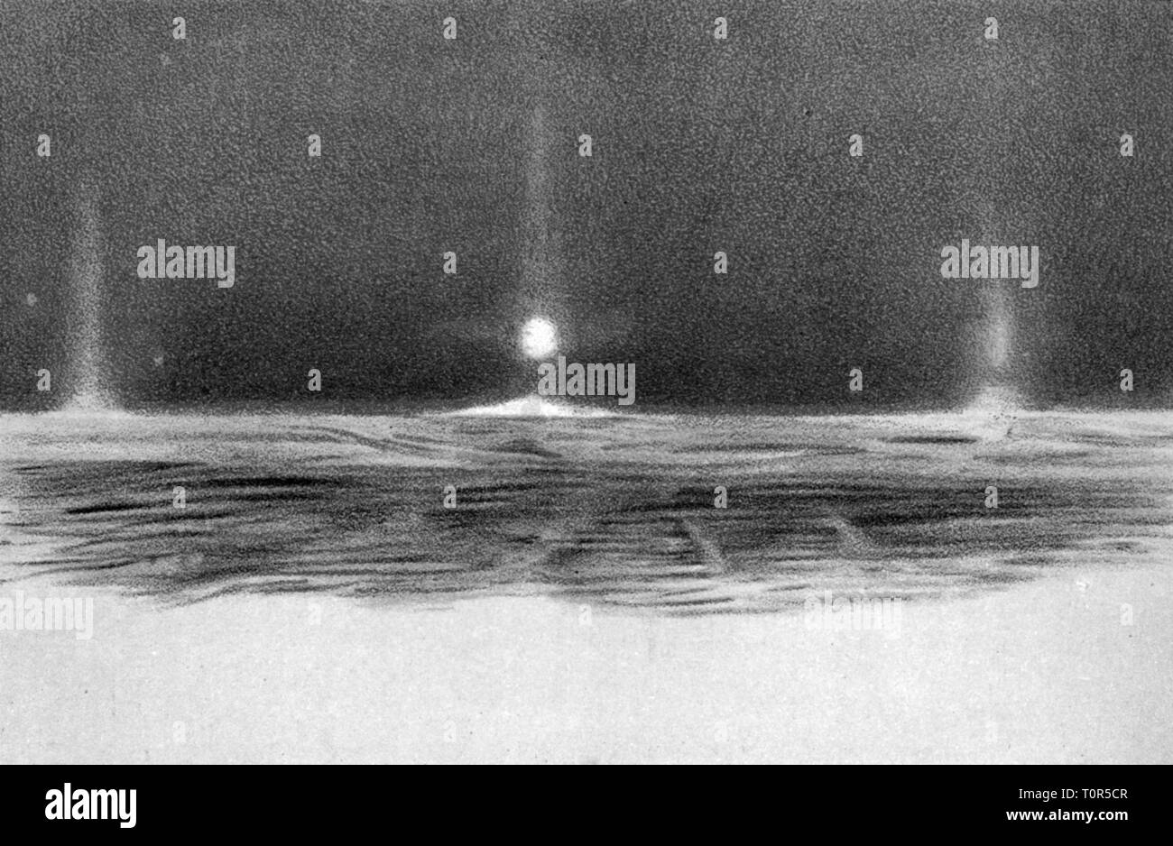 expedition, polar expedition, Fram expedition 1893 - 1896, lunar corona, 22.11.1893, pastel sketch from Fridtjof Nansen,
