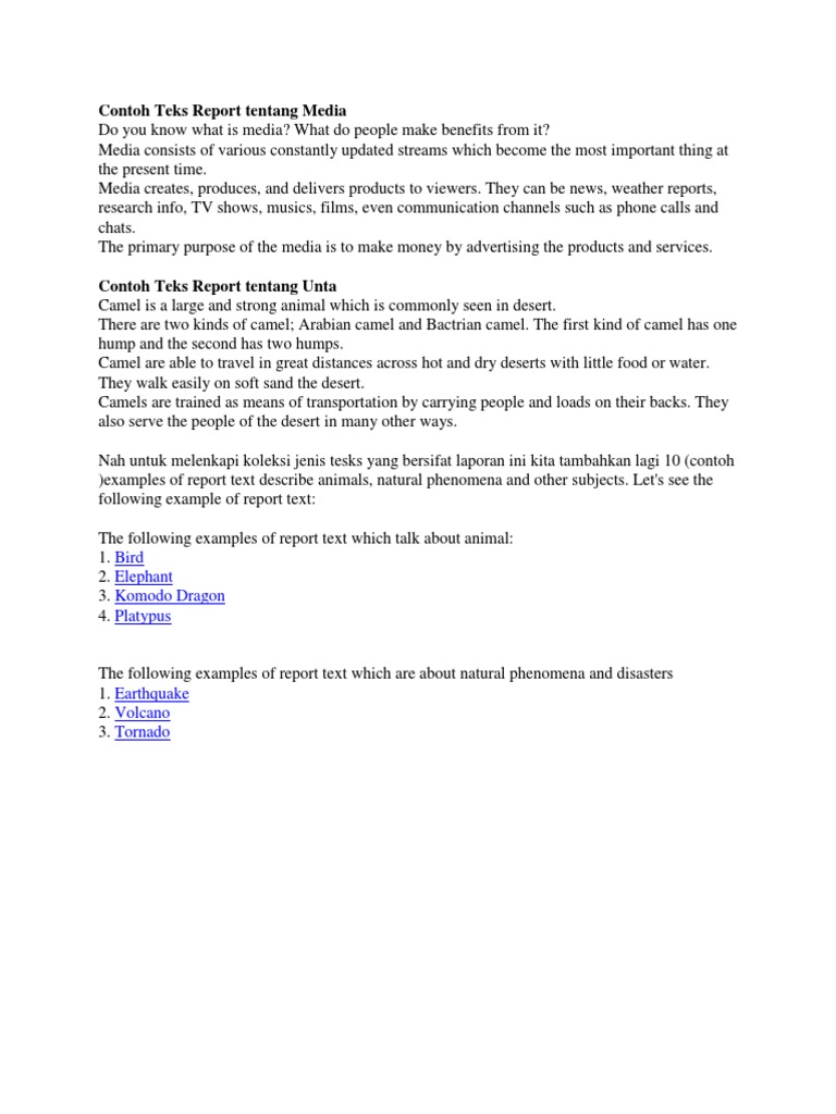 Contoh Teks Report Tentang Media | Elephant | Tornadoes