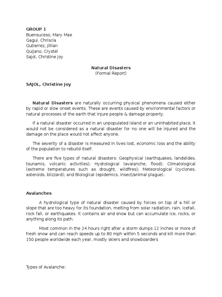 Natural Phenomena Report Text