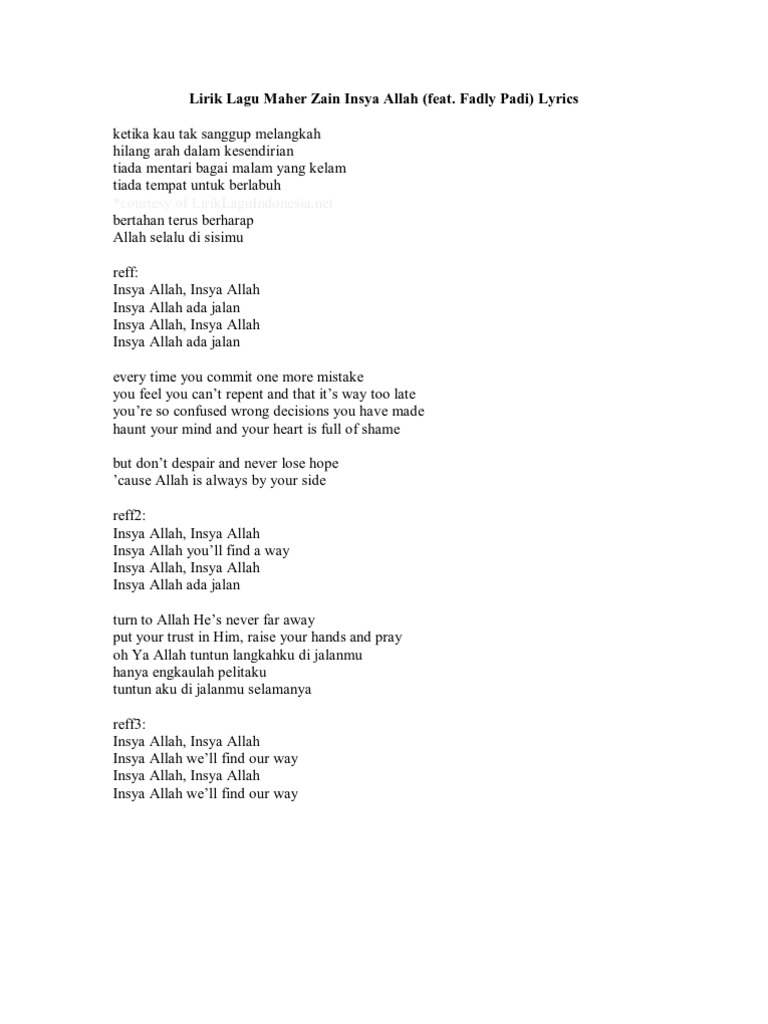 DOC) Lirik lagu maher zain | Fitriyah Istianah - Academia.edu