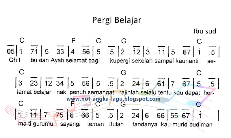 Not Angka Lagu Pergi Belajar