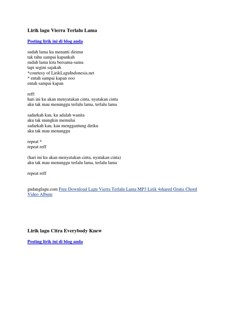 Vierra – Terlalu Lama Lyrics | Genius Lyrics