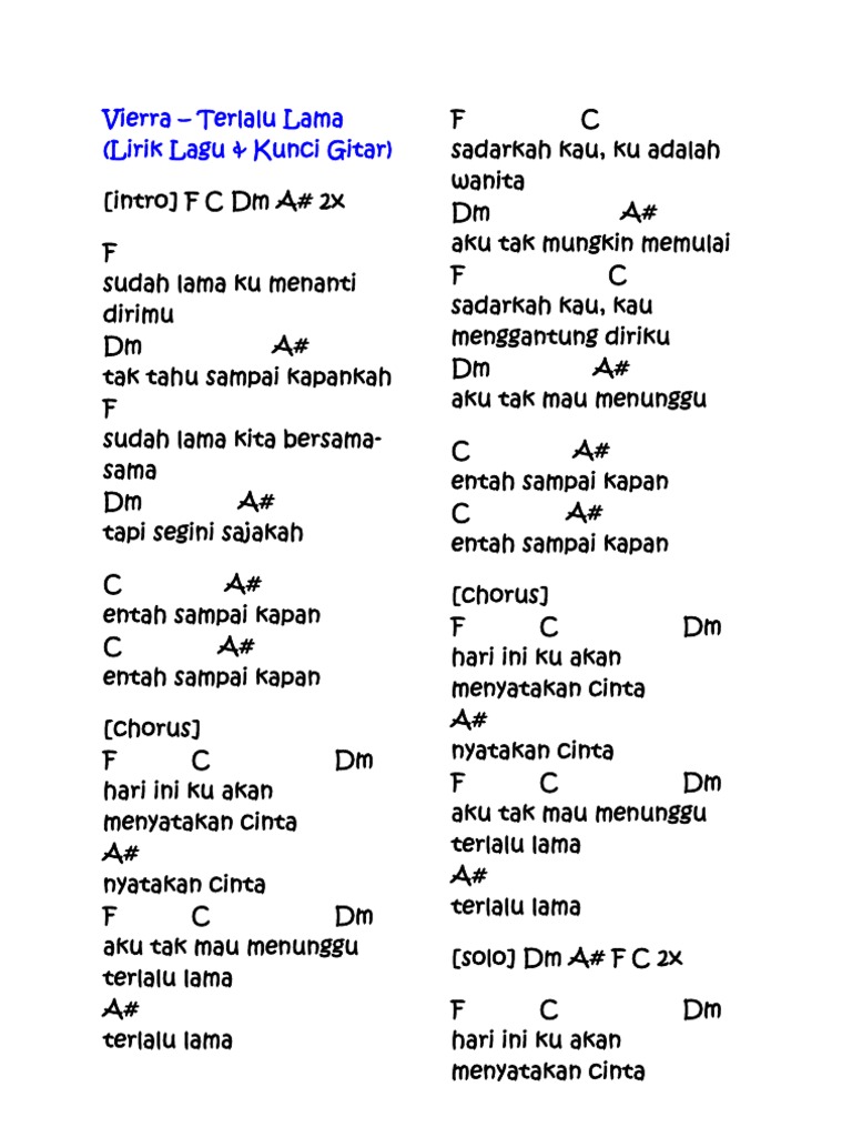Vierra – Terlalu Lama (Lirik Lagu & Kunci Gitar)