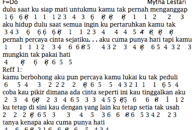 Not Angka Lagu Aku Cuma Punya Hati Mytha Lestari Piano Pianika