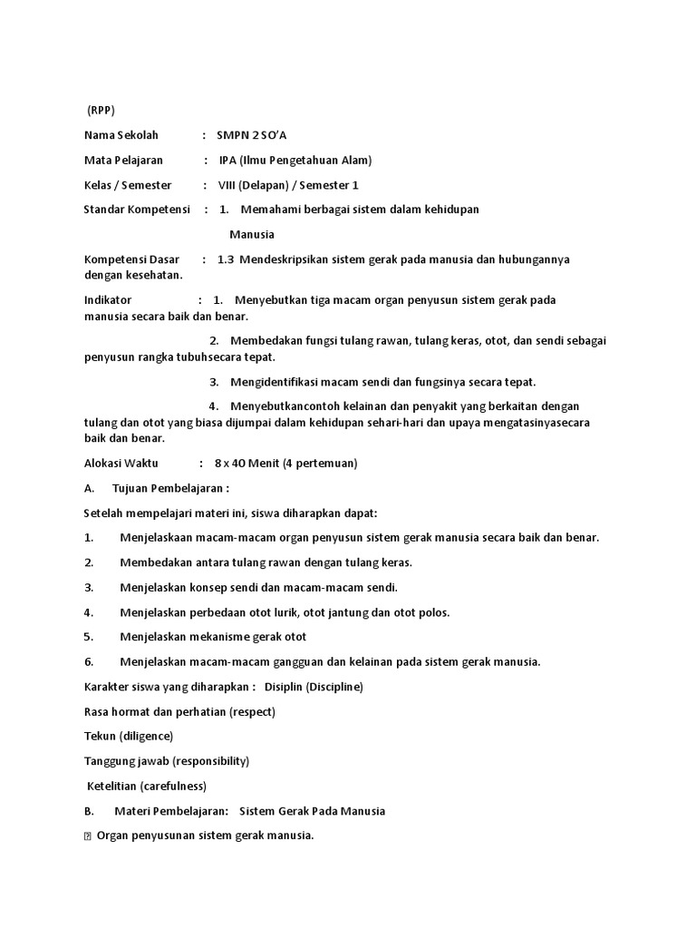 Rpp Sistem Gerak Pada Manusia Siap - [DOC Document]
