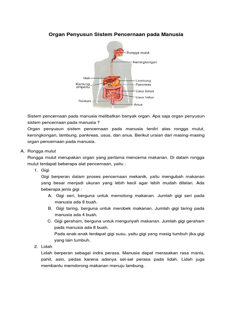 Organ-organ penyusun sistem pencernaan - Brainly.co.id