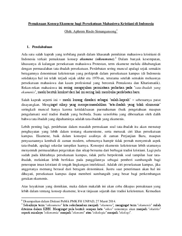 PDF) Pemaknaan Konsep Ekumene bagi Persekutuan Mahasiswa Kristiani …
