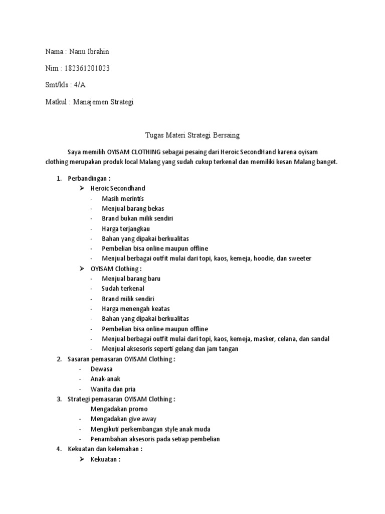 Nama: Nanu Ibrahin Nim: 182361201023 Smt/kls: 4/A Matkul …