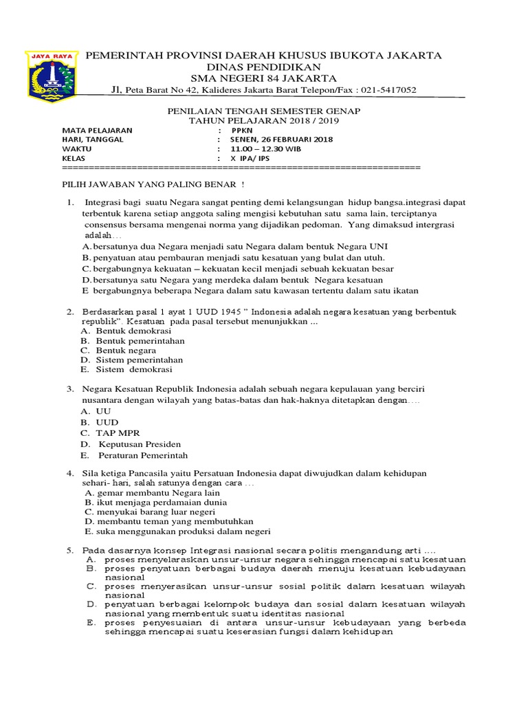 Soal PTS PKN kelas X SMA