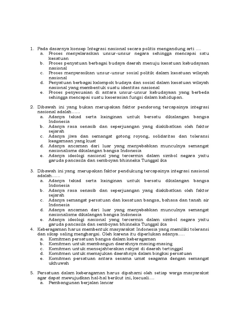SOAL INTEGRASI NASIONAL KELAS X | Education Quiz - Quizizz