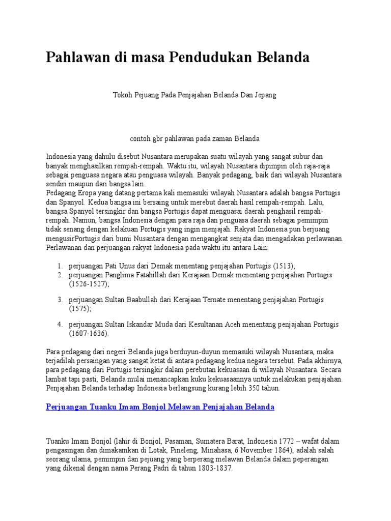 DOC) PAHLAWAN DI MASA PENDUDUKAN BELANDA | qulil haq - Academia.edu
