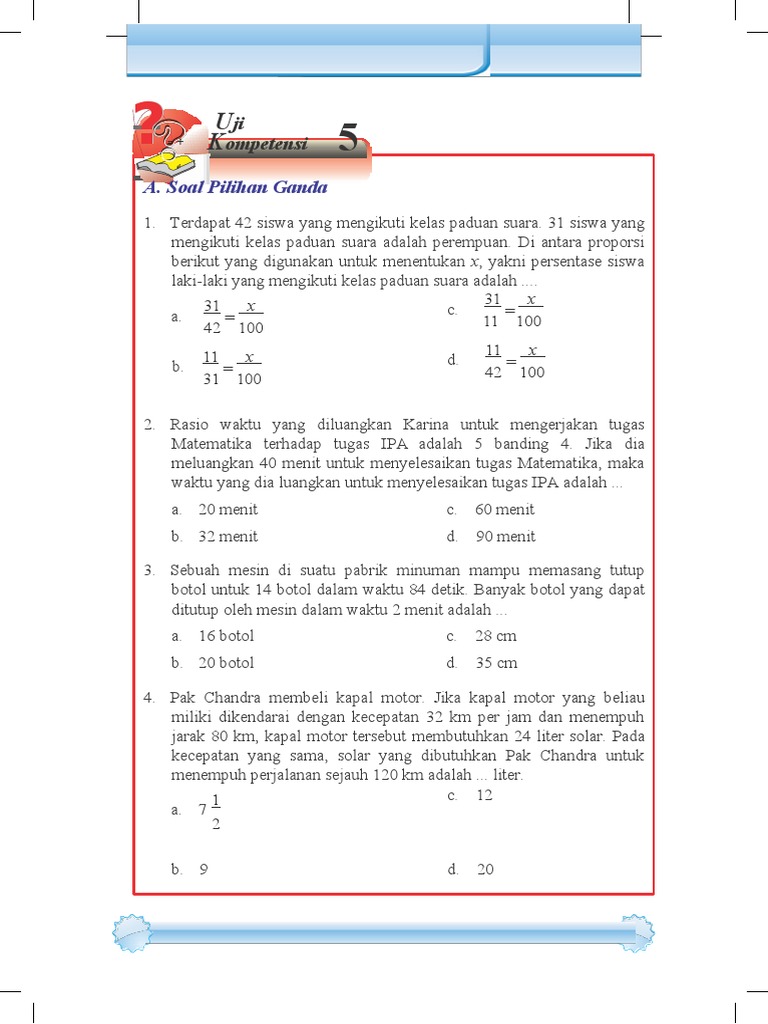 Jawaban PG Uji Kompetensi 5 Halaman 53 Bab 5 (Perbandingan) - Bas | Bahan Ajar