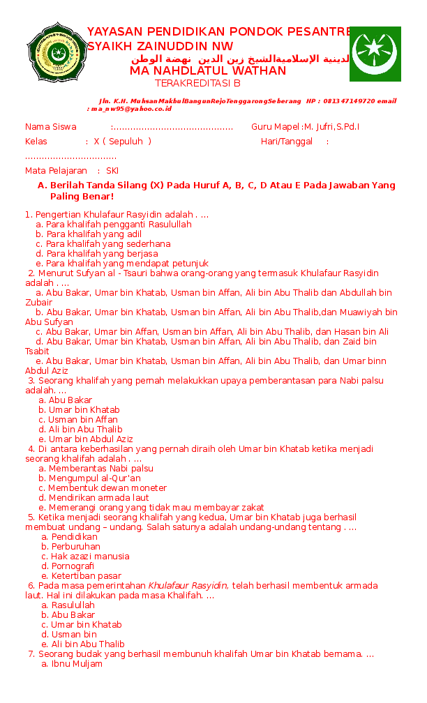Contoh Soal Ujian SKI Semester Genap (UKK) Kelas X Aliyah - Bacaan …