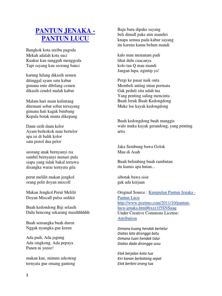 Pantun Jenaka - Pantun Lucu: Kumpulan Pantun Jenaka - Pantun Lucu Lucu-Jenaka.Html#Ixzz1F5Snsuaq Attribution