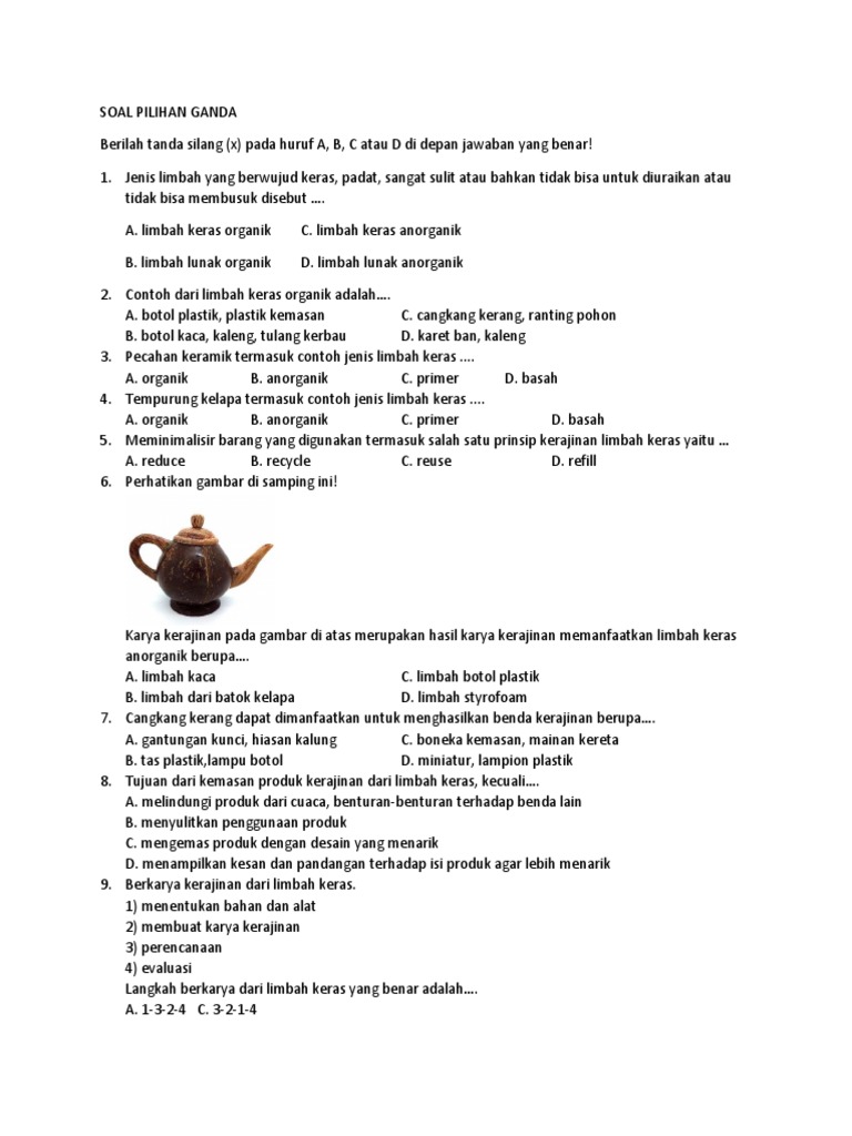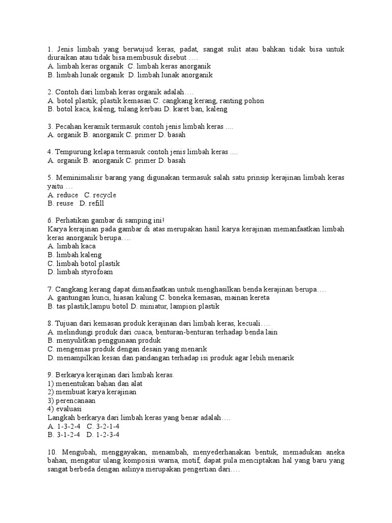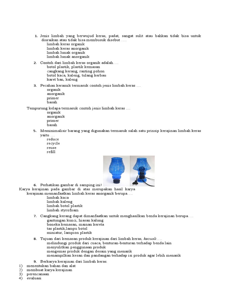 Ulangan Harian Kerajinan Limbah Keras | Other Quiz - Quizizz