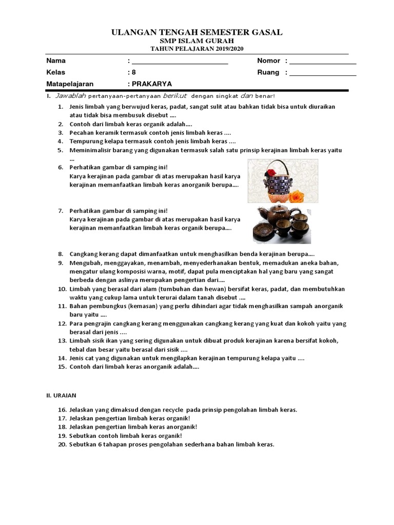 UH 2 Prakarya Kelas 8 | Other Quiz - Quizizz