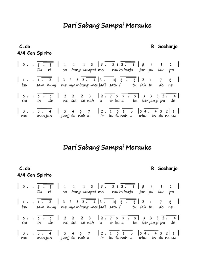 Not Angka Notasi Lagu Not Lagu Dari Sabang Sampai Merauke Cipt R …