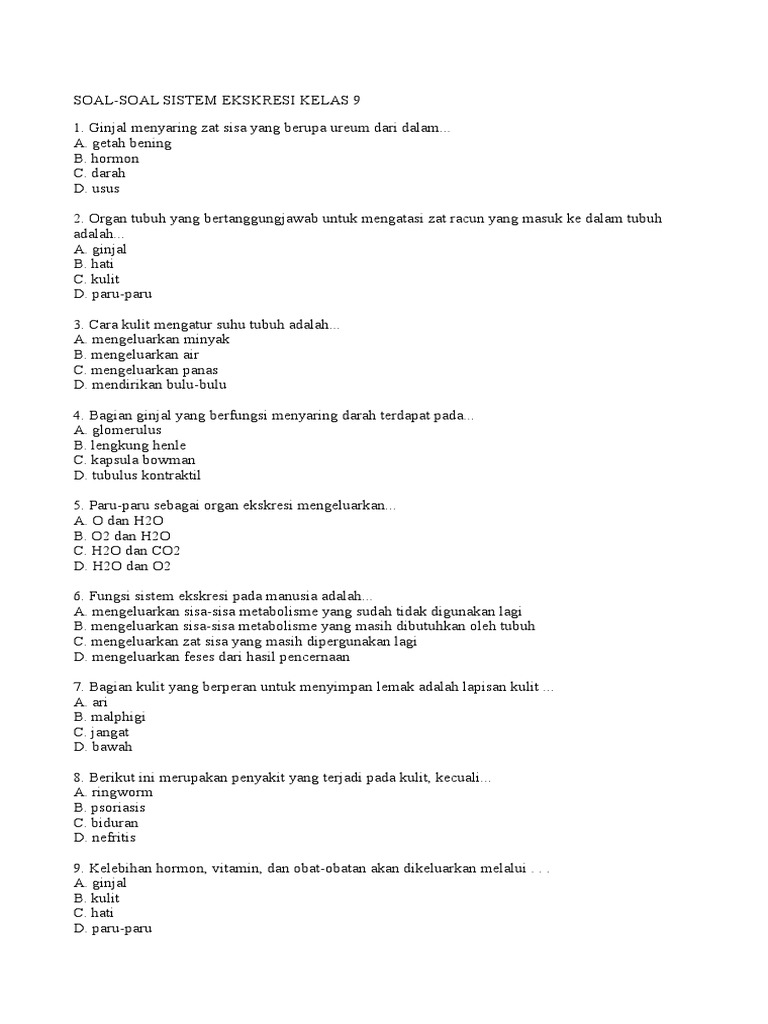 Contoh Soal IPA Ekskresi Kelas 9