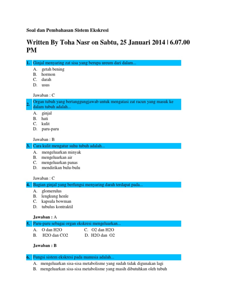 Contoh Soal Sistem Ekskresi Manusia dan Kunci Jawabannya