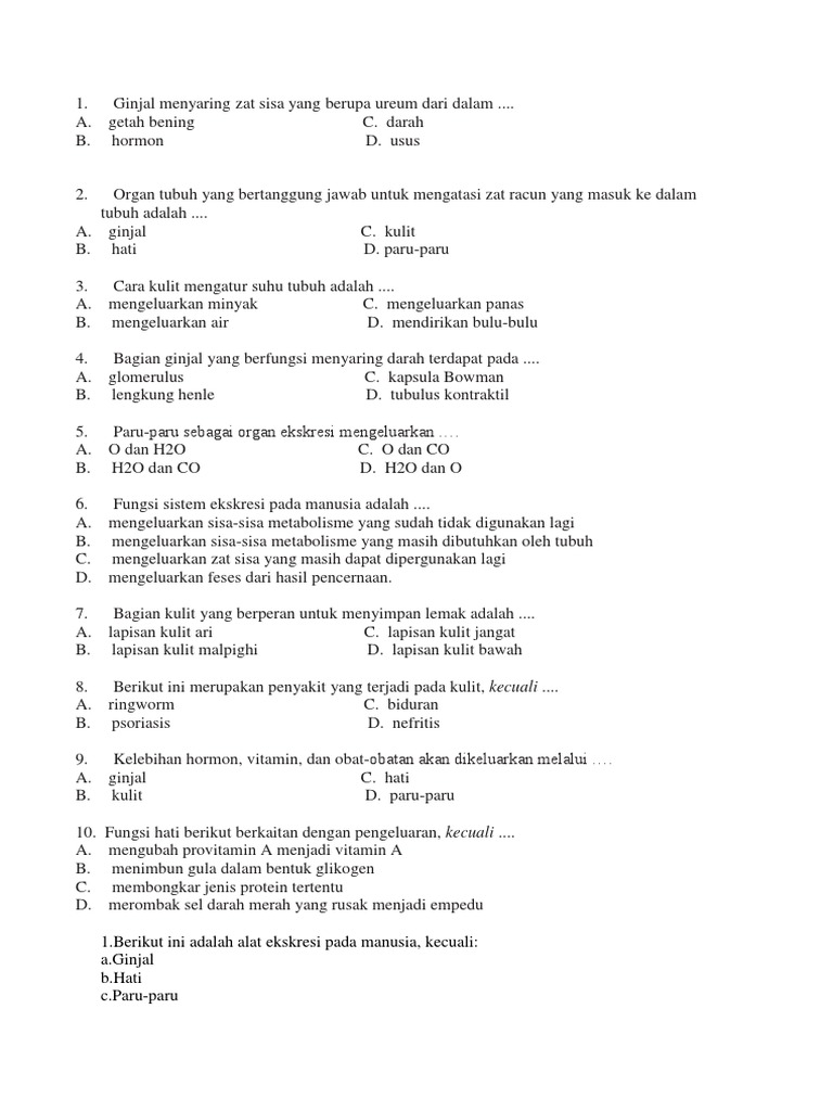 soal ekskresi