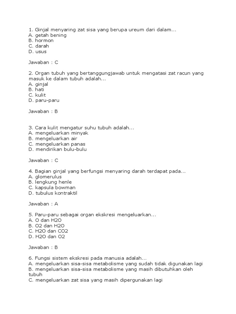 Materi Dan Soal Jawabn Sistem Ekskresi