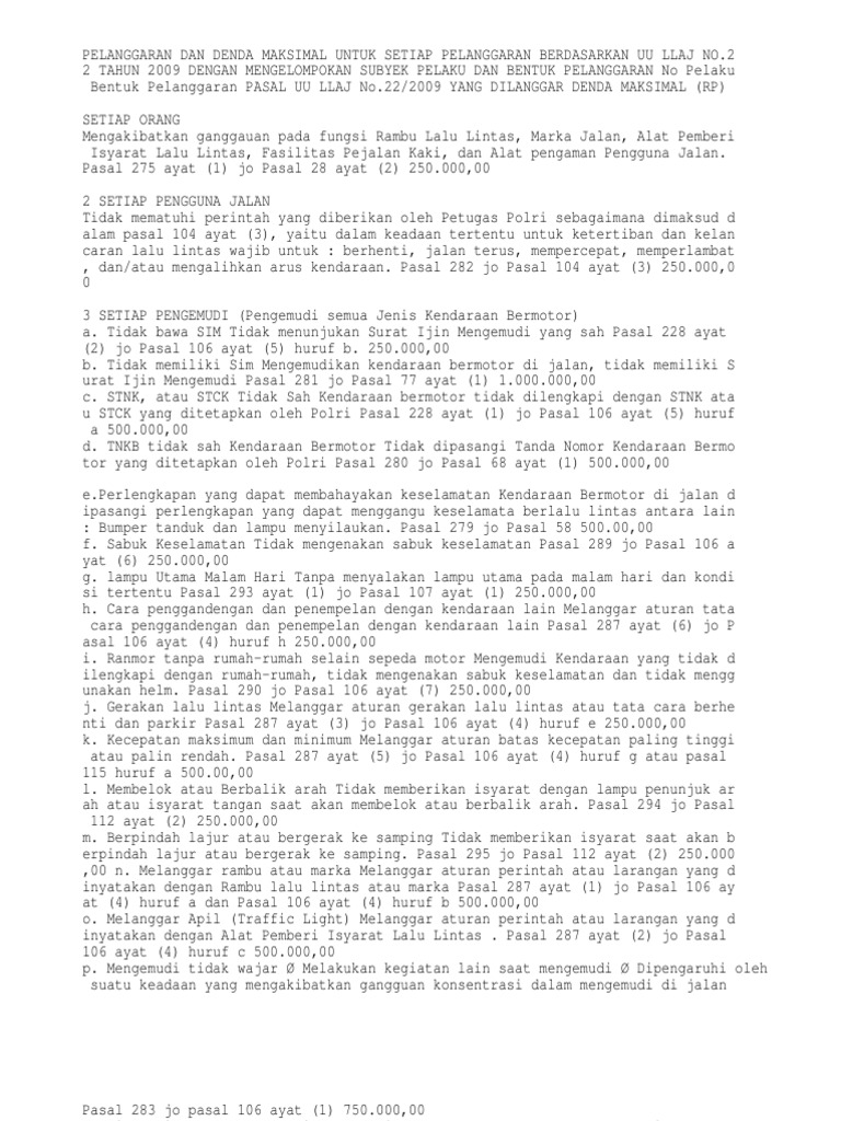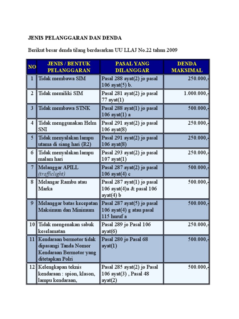 Denda Tilang Berdasarkan UU LLAJ No. 22 Tahun 2009 | KASKUS