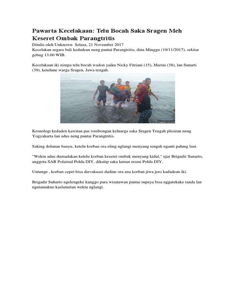 Contoh berita dalam bahasa jawa tentang kecelakaan - Pawarta …