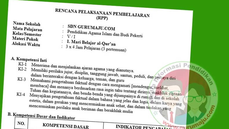 RPP PAI SD Kelas 5 Kurikulum 2013 Semester 1 Revisi Tahun 2019 …