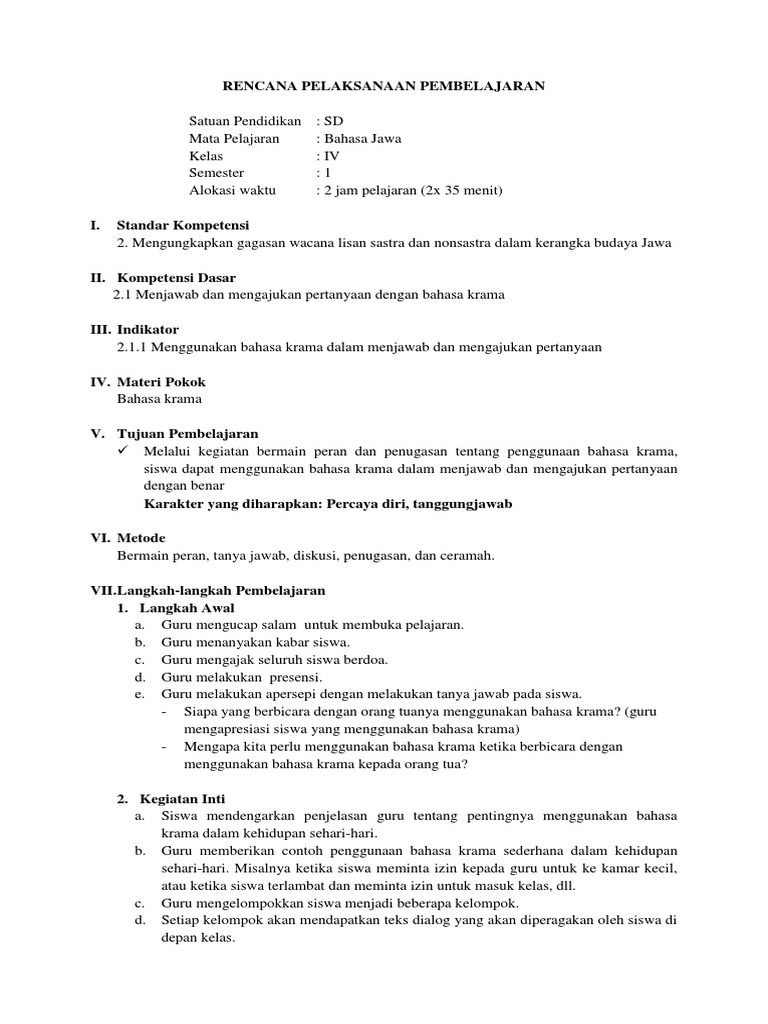 Rpp Bahasa Jawa Kelas 4 Semester 1 – IlmuSosial.id