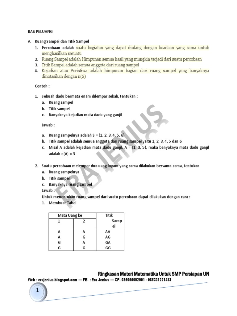 DOC) Materi Pengertian dan Rumus Peluang Matematika SMP Terlengkap | Ahmad Maulana - Academia.edu