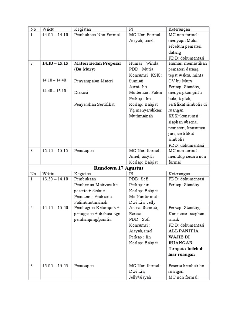 DOC) Rundown acara inaugurasi korona | Kartika Fortuna - Academia.edu