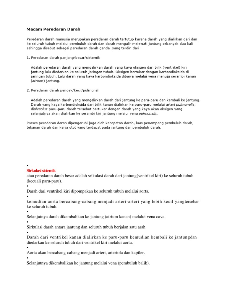 Sistem Dan Organ Peredaran Darah Manusia - Nusa Caraka