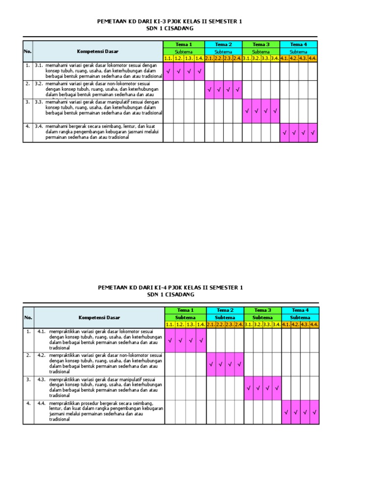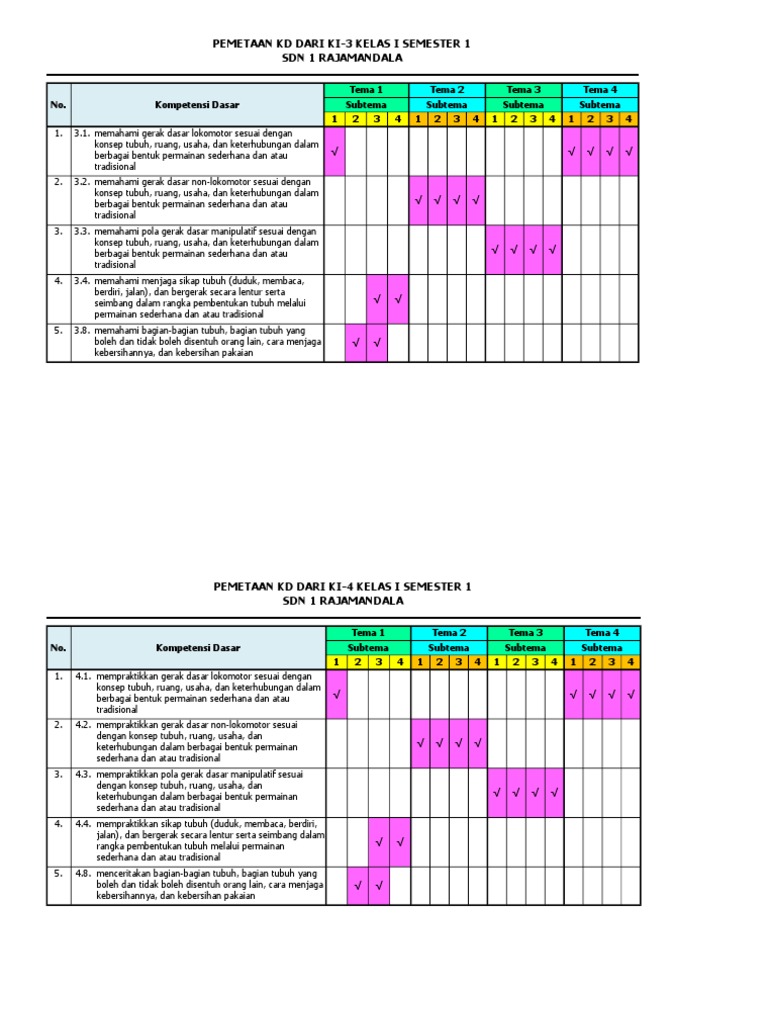 Pemetaan Kd Pjok Kelas 5 Semester 1 - Guru Paud