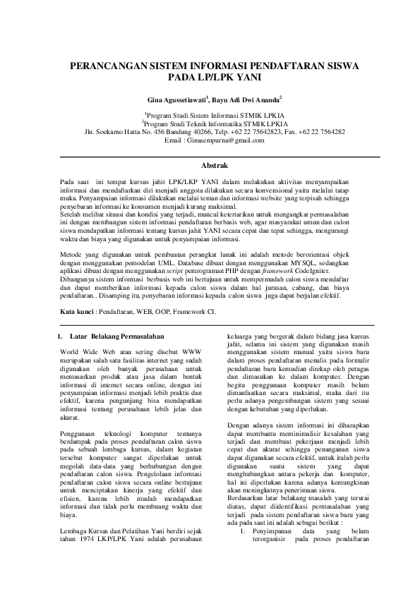 PDF) PERANCANGAN SISTEM INFORMASI PENDAFTARAN SISWA PADA LP/LPK YANI | pian haspiandi - Academia.edu