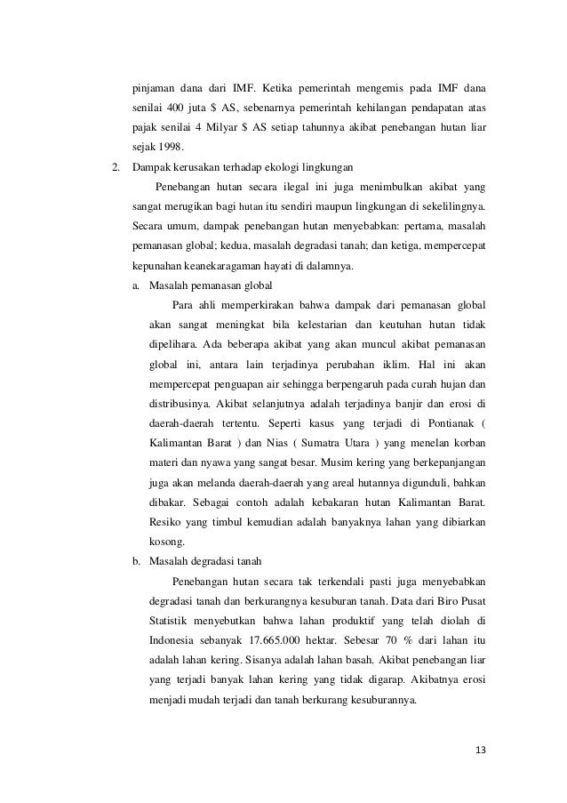 Makalah Rusaknya Sumber Daya Hutan akibat Penebangan Liar (Illegal logging) ~ ENVIROBLOG