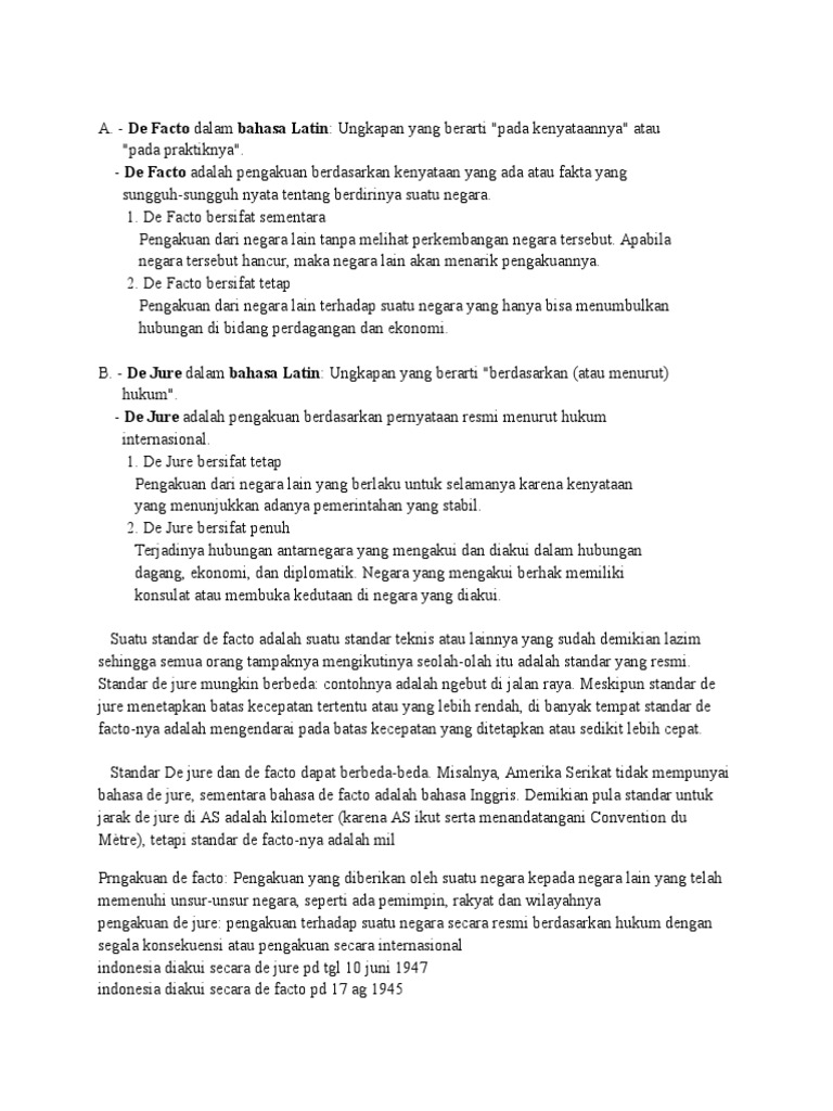 Apa perbedaan pengakuan antara de facto dan de jure? - Brainly.co.id