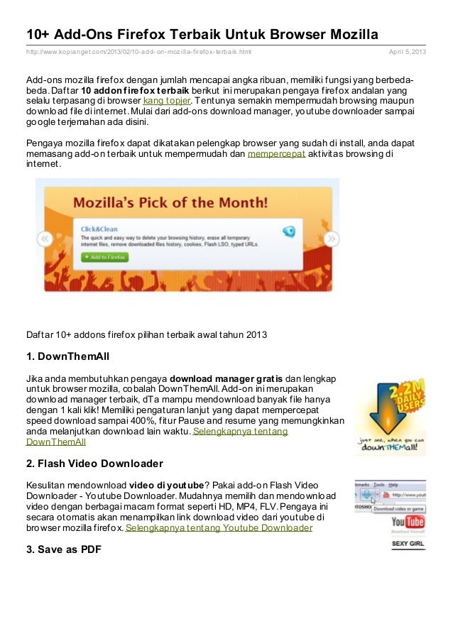 Daftar 10+ add-ons mozilla firefox terbaik tahun 2013
