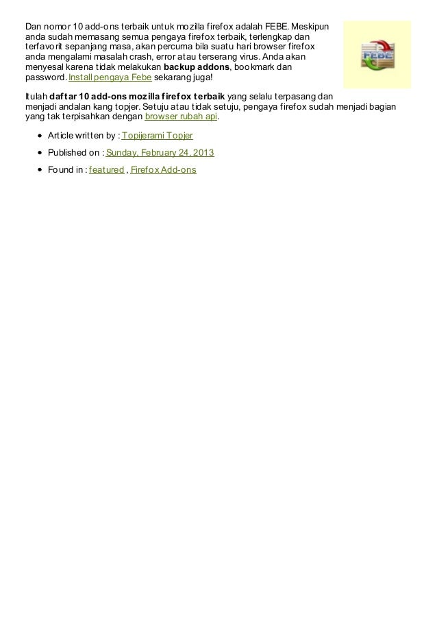 normalisasi: 10 Add Ons Firefox Terbaik Untuk Browser Mozilla
