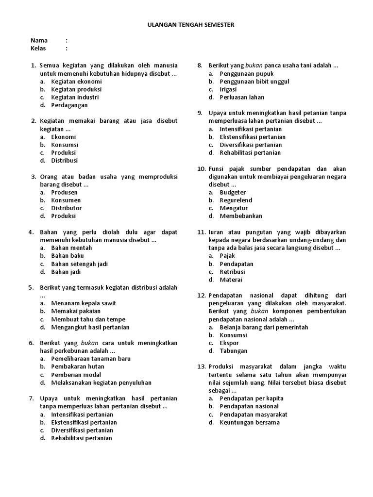Contoh Soal Ekonomi Beserta Jawaban Kelas X Semester 2 Pilihan …