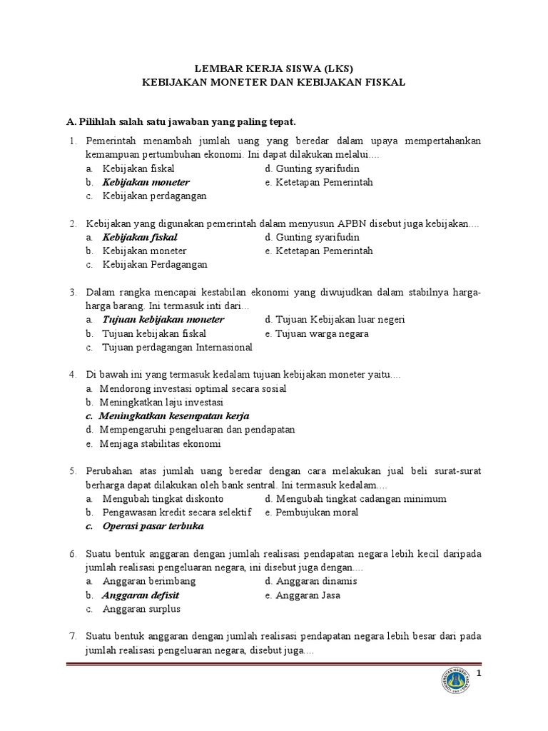Soal kebijakan moneter dan fiskal lampiran soal tes pengetahuan