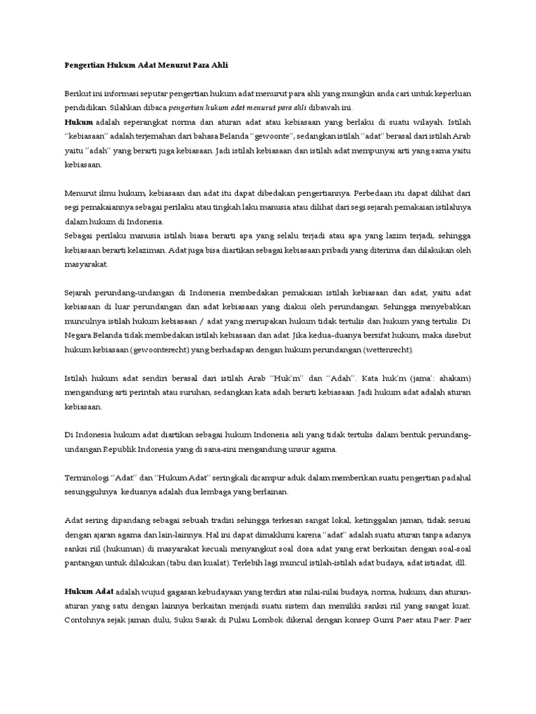DOC) Pengertian Hukum Adat Menurut Para Ahli | Zulfadli Fadli …