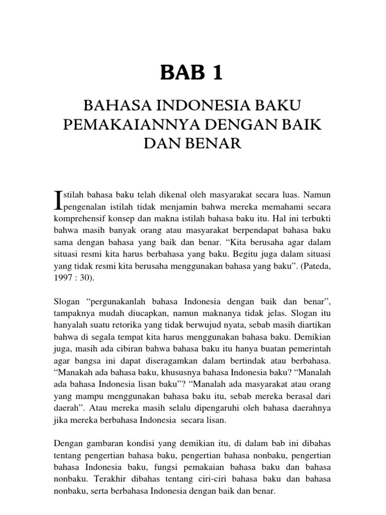 BAB 1 BAHASA INDONESIA BAKU PEMAKAIANNYA DENGAN BAIK DAN BENAR …